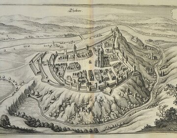 Barokní tisk Topografie Čech Moravy a Slezska (Topographia Bohemiae, Moraviae et Silesiae…) z dílny slavného frankfurtského tiskaře a rytce Matthäuse Meriana patří k nejvýznamnějším a zároveň i nejkrásnějším knihám o Českém království ze 17. století. Najdeme zde 37 vyobrazení našich měst (některé dokonce z ptačí perspektivy), která jsou z velké většiny zachycena poprvé. A právě z této knihy pochází slavná veduta Prahy vytvořená Václavem Hollarem, který se u Meriana učil. A ještě jedno prvenství má tato kniha – najdete v ní nejstarší známý plán Prahy z roku 1650.